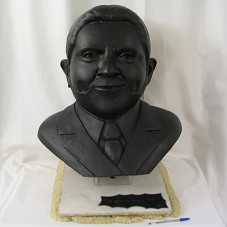 ESCULTURA EM GESSO, BUSTO DO PRESIDENTE LUIZ INÁCIO LULA DA SILVA (62x55 CM), NA COR PRETA. FIXADA EM BASE EM ACRÍLICO, E ESTA EM MÁRMORE E PEDRAS. POSSUI A INSCRIÇÃO 'A ESPERANÇA VENCEU O MEDO', NA BASE DE MÁRMORE. ACOMPANHA INFORMATIVOS SOBRE A ESCULTURA.