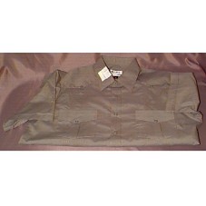 CAMISA DE GOLA CONFECCIONADA EM TECIDO NA COR VERDE, TRAZENDO NA FRENTE QUATRO BOLSOS.