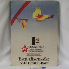 QUADRO (62,5X44,5 CM), CONTENDO CARTAZ DO '1º CONGRESSO DO PARTIDO DOS TRABALHADORES', COM DESENHO DE ALGUMAS BORBOLETAS E A INSCRIÇÃO 'ESTA DISCUSSÃO VAI CRIAR ASAS'.