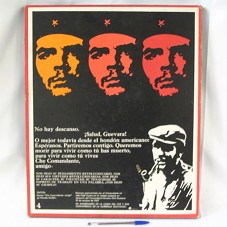 QUADRO (52X42,5 CM), COM GRAVURAS EM NEGATIVO, RETRATANDO CHE GUEVARA, CONTENDO DIVERSAS INSCRIÇÕES.