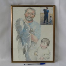 DESENHO (40X30 CM) EM PAPEL BRANCO, TIPO CANSON, FEITO EM LÁPIS DE CERA E GRAFITE. RETRATA O PRESIDENTE LULA, COM CAMISA AZUL SEGURANDO NAS MÃOS UM PEIXE INFLÁVEL, COM UMA CRIANÇA SOLTANDO O AR DO PEIXE. NO CANTO SUPERIOR DIREITO UMA FOTOGRAFIA DO PRESIDENTE COM UM PEIXE NAS MÃOS E UMA CRIANÇA AO LADO. NO CANTO INFERIOR DIREITO A ASSINATURA DO ARTISTA 'EDY TERBETO'. ATRÁS 'LUIZ INÁCIO LULA DA SILVA / THIAGO TRINDADE LULA DA SILVA / PESCARIA: PORTO (ILEGÍVEL) - MATO GROSSO / DIA 05 DE JULHO DE 1997 / PEIXES: JAÚ / PESO: 34 KILOS / FOTO: MARCOS CLAUDIO LULA DA SILVA - 07/07/1997 / QUADRO: EDY TERBETO - 14/07/1997'. COLOCADO EM MOLDURA DE METAL (40,5X30,5 CM) COM TAMPO DE VIDRO.