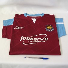 CAMISA DE FUTEBOL DO TIME INGLÊS 'WEST HAM UNITED', NA COR VINHO, COM DETALHES EM AZUL E BRANCO. NA FRENTE, ESTAMPA COM BRASÃO DO TIME, LOGOMARCA DA REEBOK E 'WWW.JOBSERVE.COM'. ATRÁS, O NÚMERO '10' E A INSCRIÇÃO 'LULA'. POSSUI SELO DE CAMISA OFICIAL.