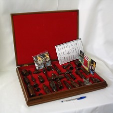 ESTOJO (50,5X39X6 CM) EM MADEIRA CONTENDO TRINTA E DUAS PEÇAS NUMERADAS, EM MADEIRA, E UMA EM METAL. PEÇAS FAZEM PARTE DA 'COLEÇÃO DE PIOS DE AVES MAURÍLIO COELHO', ASSOBIOS QUE IMITAM PIOS DE AVES. ACOMPANHA FOLHETOS DE PROPAGANDA; DOIS CHAVEIROS EM FORMA DE UM DOS PIOS; E, LIVRETO COM EXPLICAÇÃO TÉCNICA SOBRE CADA PEÇA. ANTIGAMENTE ERAM USADOS PARA CAÇA; HOJE, SÃO USADOS COMO INSTRUMENTOS MUSICAIS DE PERCUSSÃO E COMO ACESSÓRIO NA SONOPLASTIA DE PEÇAS TEATRAIS.