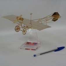 MAQUETE (21X25X6 CM) DO AEROPLANO 'DEMOISELLE Nº 21', DE 1909, DE ALBERTO SANTOS DUMONT, CONFECCIONADA EM METAL DOURADO. NA PARTE SUPERIOR, A INSCRIÇÃO 'PREFEITURA DE GUARULHOS / DEMOISELLE 21'. ACOMPANHA BASE/SUPORTE EM ACRÍLICO, TENDO, NA BASE, A INSCRIÇÃO 'PREFEITURA DE GUARULHOS / A CIDADE DO MAIOR AEROPORTO DA AMÉRICA DO SUL / ... / DEMOISELLE Nº 21 - 1909 / ALBERTO SANTOS DUMONT'. ACONDICIONADA EM CAIXA DE PAPELÃO AZUL MARINHO, COM O NOME DA PREFEITURA NA TAMPA.