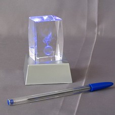 ESCULTURA RETANGULAR (4X4X6 CM) EM VIDRO, TENDO EM SEU INTERIOR, A IMAGEM TRIDIMENSIONAL DE UM CAVALO ALADO SOBRE O GLOBO TERRESTRE. POSSUI AS ARESTAS LAPIDADAS E BISOTADAS. ACOMPANHA BASE EM PLÁSTICO PRATEADO, COM UM FURO CENTRAL ONDE HÁ TRÊS LÂMPADAS PEQUENAS (TIPO FUSÍVEL), QUE AO SEREM LIGADAS, FICAM ALTERNANDO ENTRE AS CORES AZUL, VERMELHO, ROSA, LARANJA. ACONDICIONADOS EM CAIXAS SEPARADAS: O OBJETO EM CAIXA VERMELHA E A BASE EM CAIXA BRANCA.
