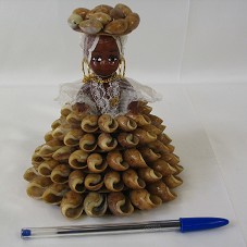 ARTESANATO (15 CM) RETRATANDO A FIGURA DE UMA BAIANA, CONFECCIONADO EM CONCHAS MARINHAS E UMA BONECA DE PLÁSTICO. POSSUI A INSCRIÇÃO 'À MARISA E LULA / ESTA LEMBRANÇA É PRÁ QUE VOCÊS SAIBAM NÃO SÓ O QUE AS BAIANAS TÊM, MAS O QUE SÃO CAPAZES DE FAZER. / LHES AMAMOS. / MOEMA GRAMACHO'.