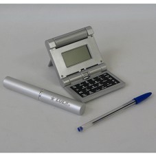 CALCULADORA-RELÓGIO, EM PLÁSTICO PRATEADO, IMITANDO METAL, TENDO, NA TAMPA, A INSCRIÇÃO 'MOVIMENTO INDEPENDENTE LULA PRESIDENTE'. ACONDICIONADO EM CAIXA DE PAPELÃO BRANCO, COM MESMA INSCRIÇÃO NA FRENTE. ACOMPANHA UM PORTA-CANETA (15X2 CM) DE FORMATO CILÍNDRICO, EM ALUMÍNIO, COM MESMA INSCRIÇÃO.