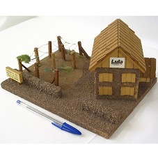 ARTESANATO (12X26X20 CM), RETRATANDO UMA PROPRIEDADE COM UMA CASA E UMA VIDEIRA AO LADO. POSSUI ADESIVOS NA CASA COM A INSCRIÇÃO 'LULA PRESIDENTE' E UMA PLACA 'CAXIAS DO SUL / RIO G. DO SUL / CASA DE PEDRA'. NO FUNDO A INSCRIÇÃO 'LULA / LEONEL J. GUERRA / CAXIAS DO SUL 03.09.2002'.