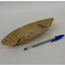 MINIATURA DE CANOA (25X6,5X2,5 CM) EM MADEIRA. NA PARTE INTERNA, A INSCRIÇÃO 'LULA LUTA / BOA-SORTE E FELIZ 94...'. NO FUNDO, 'LUTEMOS JUNTOS ORGANIZADOS E / UNIDOS POR UMA SOCIEDADE / LIVRE, FRATERNA, SOLIDÁRIA. RESGATAR O / AMOR E A JUSTIÇA SOCIAL COMO PRINCÍPIO DE VIDA ABUNDANTE É CONTAR COM A GRAÇA E A FORÇA DE DEUS PAI-MÃE QUE É FIEL NA CAMINHADA HISTÓRICA DO SEU POVO. COM CARINHO DAS PESSOAS DA VILA SÃO BENEDITO - AM'.