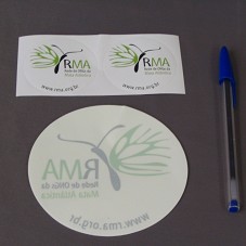 TRÊS ADESIVOS, SENDO UM PARA VIDRO E DOIS NORMAIS, COM A INSCRIÇÃO 'RMA REDE DE ONGS DA MATA ATLÂNTICA' E 'WWW.RMA.ORG.BR', EM PRETO E VERDE, E LOGOMARCA DA REDE, UMA BORBOLETA NAS MESMAS CORES.