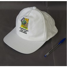 DOIS BONÉS EM BRIM BRANCO. NA FRENTE, ESTAMPA COLORIDA, COM A INSCRIÇÃO 'VAMOS CUIDAR DO BRASIL / II CONFERENCIA NACIONAL INFANTO-JUVENIL PELO MEIO AMBIENTE'. ATRÁS, UM MAPA DO BRASIL E 'CNTI'; E, AINDA, NOME DE INSTITUIÇÕES PARTICIPANTES, 'MINISTÉRIO DO MEIO AMBIENTE', 'MINISTÉRIO DA EDUCAÇÃO', E LOGOMARCA DO GOVERNO FEDERAL.