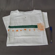 CAMISETA (TAM M) EM MALHA BRANCA, DE MANGA CURTA. NA FRENTE, ESTAMPA EM LARANJA E VERDE, COM A INSCRIÇÃO 'II CONFERÊNCIA NACIONAL INFANTO-JUVENIL PELO MEIO AMBIENTE / VIVENDO A DIVERSIDADE NA ESCOLA / VAMOS CUIDAR DO BRASIL / 23 A 28 ABRIL 2006'. ATRÁS, NOMES E LOGOMARCAS DE INSTITUIÇÕES PARCEIRAS, PATROCÍNIO E REALIZAÇÃO, ENTRE ELAS, 'MINISTÉRIO DO MEIO AMBIENTE', 'MINISTÉRIO DA EDUCAÇÃO', E LOGOMARCA DO GOVERNO FEDERAL.