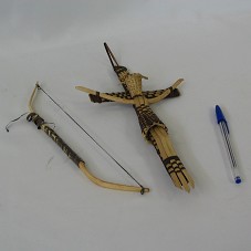 DOIS ARTESANATOS INDÍGENAS: O PRIMEIRO, MINIATURA DE ARCO INDÍGENA (27 CM), CONFECCIONADO EM BAMBU E PALHA; O SEGUNDO, CRUCIFIXO COM IMAGEM PRESA À ELE (29,5X16X2,5 CM), CONFECCIONADO EM BAMBU E PALHA.