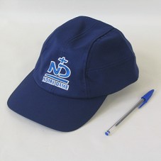 BONÉ EM TECIDO AZUL MARINHO. NA FRENTE, BORDADA EM AZUL E BRANCO, LOGOMARCA DA'NOTRE DAME'. ATRÁS, 'WWW.NOTREDAME.ORG.BR'.
