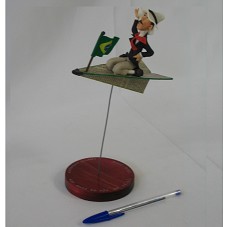 ARTESANATO (12X14X6,5 CM), CONFECCIONADO EM BISCUIT, MOSTRANDO SANTOS DUMONT SOBRE UM AVIÃO DE PAPEL, COM A BANDEIRA DO BRASIL NA PONTA DESTE. NA PARTE POSTERIOR DO AVIÃO, ASSINATURA DA ARTISTA 'REGINA BERT'. FIXADO EM HASTE DE ARAME, E ESTA, EM BASE CIRCULAR DE MADEIRA. NA BASE, A INSCRIÇÃO 'SANTOS=DUMONT / 100 ANOS DO VÔO DO 14-BIS / 1906-2006'. NO FUNDO DA BASE, ETIQUETA COM DADOS DO FABRICANTE, E SÍTIO 'WWW.REGINABERT.COM.BR'.