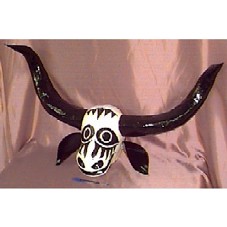 CABEÇA DE BOI USADA NAS CAVALHADAS (FESTA TÍPICA DE PIRENÓPOLIS-GO), CONFECCIONADA EM PAPEL MACHÊ, NAS CORES BRANCO E PRETO, COM DOIS CHIFRES DESTACÁVEIS.