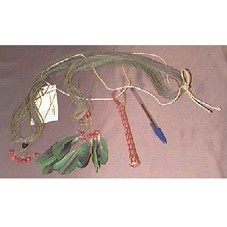 UMA GUIA CONFECCIONADA COM CORDÃO DE PALHA, BÚZIOS, SEMENTES VERMELHAS E SEMENTE PRETA; UMA GUIA CONFECCIONADA COM CORDÃO DE PALHA, BÚZIOS, SEMENTES VERMELHAS E PENAS VERDES; E UMA GUIA CONFECCIONADA COM CORDÃO DE PALHA, CONTENDO UM PINGENTE CONFECCIONADO EM VIME. ACOMPANHA CARTÃO DO SR. ORENI CAMPELO BRAGA.
