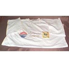 CAMISETA BRANCA EM MALHA DE ALGODÃO, TAMANHO G, TRAZENDO ESTAMPADAS A INSCRIÇÃO 'ITIQUIRA TURISMO' E DUAS LOGOMARCAS, SENDO UMA DA ITIQUIRA TURISMO E OUTRA DO 'INSTITUTO DE ESTUDOS E PESQUISA DA QUALIDADE / 2003 / PRÊMIO NACIONAL DA QUALIDADE EM TURISMO'.