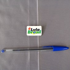 BÓTON RETANGULAR (3,5X2,5 CM) EM METAL PRATEADO, COM FUNDO BRANCO E A INSCRIÇÃO 'LULA BRASIL'