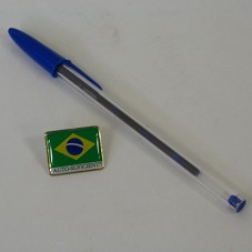 BÓTON (1,5X2,5 CM) EM METAL DOURADO, COM DESENHO DA BANDEIRA DO BRASIL E A INSCRIÇÃO 'AUTO-SUFICIENTE'.
