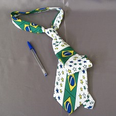 GRAVATA BRANCA, COM ESTAMPA DE ESTRELAS VERDE, AMARELA, AZUL E BRANCA, E DA BANDEIRA DO BRASIL.