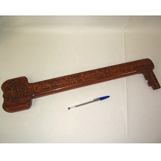 CHAVE DA CIDADE DE ALPINÓPOLIS (58 CM), EM MADEIRA ENVERNIZADA. POSSUI A INSCRIÇÃO 'LULA / ALPINÓPOLIS ESTARA SEMPRE DE PORTAS ABERTAS PARA VOCÊ / UMA HOMENAGEM DA PREFEITURA MUNICIPAL DE ALPINÓPOLIS / GESTÃO 2001/2004'.