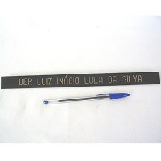PLACA DE IDENTIFICAÇÃO DE GABINETE PARLAMENTAR (30X2,5 CM). POSSUI A INSCRIÇÃO 'DEP. LUIZ INÁCIO LULA DA SILVA'.