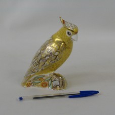 ESCULTURA (8X7X14 CM) EM PORCELANA, NO FORMATO DE UM PAPAGAIO AMARELO, COM DETALHES DOURADOS. NO FUNDO DA BASE, MOEDA AMARELA COM LOGOMARCA E NOME DO FABRICANTE, E A INSCRIÇÃO 'CITRON COCKATOO'. ACONDICIONADA EM EMBALAGEM DE PAPELÃO AZUL, COM LOGOMARCA E NOME DO FABRICANTE.