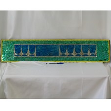 QUADRO (20X96 CM) EM MOSAICO DE VIDRO, COM FUNDO VERDE E BORDAS AMARELAS, RETRATANDO A FACHADA DO PALÁCIO DO ALVORADA. NO CANTO INFERIOR DIREITO, A INSCRIÇÃO 'VANESSA M. MACIEL'.