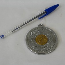 MEDALHA (66 MM) EM METAL PRATEADO CROMADO. NO ANVERSO, NO CENTRO, MEDALHA DOURADA, COM DESENHO DE UM HOMEM JOGANDO FUTEBOL. NO REVERSO, A INSCRIÇÃO 'TORNEIO DA AMIZADE / GENTILEZA BANCO NACIONAL / 1987'. MEDALHA ESTÁ PERDENDO A PINTURA CROMADA NA PARTE POSTERIOR, APRESENTANDO PARTES DESCASCADAS.