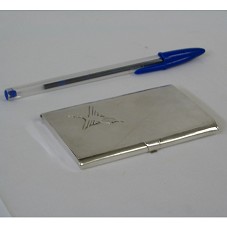 PORTA-CARTÃO DE VISITA (9,2X6,2 CM) EM PRATA 925. NA TAMPA, EM ALTO RELEVO, DESENHO DE UM PÁSSARO. ACONDICIONADO EM ESTOJO FORRADO DE VELUDO PRETO. ACOMPANHA CARTÃO DE VISITA DO REMETENTE.
