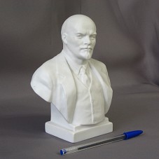 ESCULTURA (18X15X8 CM) EM CERÂMICA BRANCA, IMITANDO MÁRMORE. RETRATA BUSTO DE LENIM. OCA NA PARTE INTERNA.
