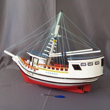 MINIATURA DE BARCO (48X66X20 CM) EM FIBRA DE BURITI, PINTADO EM BRANCO, COM DETALHES EM LARANJA, AMARELO, AZUL E MARROM. POSSUI A INSCRIÇÃO 'ASAMAB' E 'PTE. LULA', NAS DUAS LATERAIS.