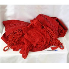 REDE DE DESCANSO, EM TECIDO VERMELHO, COM FRANJAS EM CROCHÊ, NA MESMA COR. NA FRANJA, A INSCRIÇÃO 'LULA / MARIZA'. POSSUI DETALHES BORDADOS NAS EXTREMIDADES.