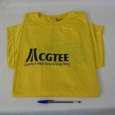 DUAS CAMISETAS (TAM M E GG) EM MALHA AMARELA, DE MANGA CURTA. A PRIMEIRA, NA FRENTE, ESTAMPA COM DESENHO DE UM HOMEM FAZENDO CANOAGEM E A INSCRIÇÃO 'CGTEE / CGTEE CANOAGEM NA ESCOLA'. ATRÁS, 'CGTEE / COMPANHIA DE GERAÇÃO TÉRMICA DE ENERGIA ELÉTRICA / GRUPO ELETROBRÁS / MINISTÉRIO DE MINAS E ENERGIA / BRASIL GOVERNO FEDERAL'. A SEGUNDA, COM ESTAMPAS INVERTIDAS.