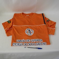 CAMISETA (TAM GG) EM MALHA LARANJA, DE MANGA CURTA. NA FRENTE, ESTAMPA COM A INSCRIÇÃO 'CARVÃO DE CANDIOTA / ENERGIA DO SOLO GAÚCHO' E DESENHO COM A INSCRIÇÃO 'ASSOCIAÇÃO ATLÉTICA CGTEE'.