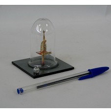 MINIATURA DE NOSSA SENHORA DE NAZARÉ (3,5 CM), CONFECCIONADA EM PALITO DE FÓSFORO, COM PINTURA EM PURPURINA. COLADA EM BASE DE VIDRO FUMÊ, ONDE HÁ UMA ESFERA METÁLICA, E PROTEGIDA POR REDOMA DE VIDRO (7,5 CM).