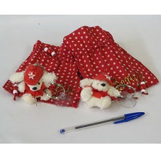 DOIS CHAVEIROS IGUAIS, TENDO COMO PINGENTE UM CACHORRO DE PELÚCIA, NA COR BEGE, VESTINDO CAMISETA E BONÉ VERMELHOS, COM ESTRELA DO PT. POSSUI VENTOSA PARA FIXAÇÃO EM VIDRO. ACONDICIONADOS SEPARADAMENTE EM SACO DE TECIDO VERMELHO COM ESTRELAS BRANCAS, POSSUINDO A INSCRIÇÃO 'BENJY'. ACOMPANHA CARTÃO DE VISITA DA ARTISTA.