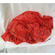 BANDEIRA (95X135 CM) EM TECIDO VERMELHO, TENDO AO CENTRO, DOS DOIS LADOS, CÍRCULO BRANCO COM A LOGOMARCA DO 'MOVIMENTO DOS TRABALHADORES RURAIS SEM TERRA'.