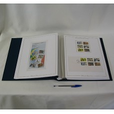 ÁLBUM (33X30,5 CM), FORRADO COM TECIDO AZUL MARINHO, CONTENDO A COLEÇÃO 'SELOS DO BRASIL 2005', COMPOSTA POR EMISSÕES COMEMORATIVAS, ESPECIAIS, PROMOCIONAIS E ORDINÁRIAS. POSSUEM TEMAS RELEVANTES, DESTACANDO A DIPLOMACIA, OS RECURSOS NATURAIS, A FAUNA E A FLORA, A HISTÓRIA, AS PERSONALIDADES MARCANTES, AS COMEMORAÇÕES NO CAMPO DESPORTIVO, AS CAMPANHAS NACIONAIS, E OUTROS, PERFAZENDO UM TOTAL DE VINTE E CINCO EDITAIS.