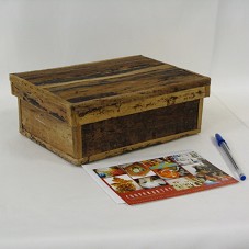 CAIXA RETANGULAR COM TAMPA (22,5X15X8,5 CM) CONFECCIONADA COM FOLHA SECA. ACOMPANHA POSTAL DA 'COOPERARTES - COOPERATIVA DO ARTESANATO DE SABARÁ'.