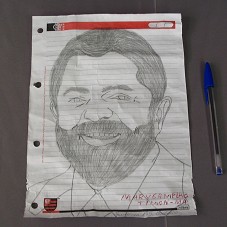 DESENHO, EM FOLHA PAUTADA COM EMBLEMA DO CLUBE DE REGATAS FLAMENGO, RETRATANDO O PRESIDENTE LULA. NO CANTO INFERIOR DIREITO, EM CANETA ESFEROGRÁFICA VERMELHA, 'MAR VERMELHO / TIMON -MA' E 'FRANCISCA M. S. OSÓRIO'.