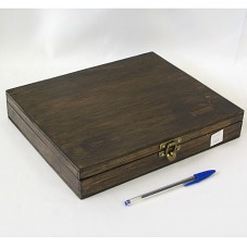 CAIXA (30X25X5,5 CM) EM MADEIRA ENVELHECIDA, COM TRINCO EM METAL ACOBREADO. NA TAMPA, GRAVAÇÃO COM O EMBLEMA DO 'GOIÁS ESPORTE CLUBE', E DA MARCA 'PUMA'. NA PARTE INTERNA, PAPEL COLADO DO 'INSTITUTO REVIVERDE', SOBRE O MATERIAL; E FOLDER 'PAPÉIS MIRIAM PIRES'.