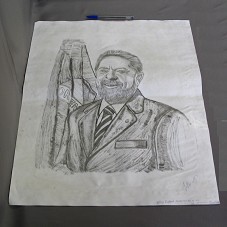 DESENHO (60X50 CM) EM GRAFITE, SOBRE PAPEL BRANCO, RETRATANDO O PRESIDENTE LULA AO LADO DA BANDEIRA DO BRASIL.