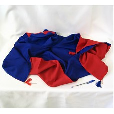 LENÇO (109X109 CM) COM UMA DAS FACES NA COR AZUL, E OUTRA NA COR VERMELHA. POSSUI EM CADA PONTA, PINGENTES DE SEDA, NAS CORES AZUL E VERMELHO.