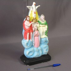 ESCULTURA EM GESSO (25X13X5 CM) SIMBOLIZANDO A SANTÍSSIMA TRINDADE (PAI, FILHO E ESPÍRITO SANTO) COROANDO A VIRGEM MARIA. POSSUI BASE PRETA.