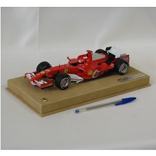 MODELO REDUZIDO DE CARRO DE CORRIDA (25X10,5X4,5 CM), NA COR VERMELHA, DA MARCA FERRARI. FIXADA EM BASE COBERTA DE CAMURÇA BEGE, ONDE HÁ BRASÃO METÁLICO COM SÍMBOLO DA 'FERRARI' E PLACA COM A INSCRIÇÃO '248 F1'. POSSUI REDOMA DE ACRÍLICO (SOLTA DA BASE). ACONDICIONADO EM CAIXA FORRADA DE VERMELHO COM A LOGOMARCA DA FERRARI NA TAMPA (UM CAVALO).