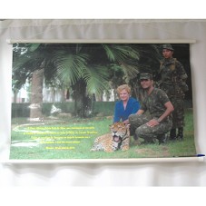 BANNER (57X86 CM) COM FOTOGRAFIA DA PRIMEIRA-DAMA MARISA LETÍCIA LULA DA SILVA, AGACHADA, PASSANDO A MÃO EM UM TIGRE, TENDO AO SEU LADO, DOIS SOLDADOS DO EXÉRCITO BRASILEIRO. POSSUI A INSCRIÇÃO 'À DONA MARISA LETÍCIA LULA DA SILVA, UMA RECORDAÇÃO DE SUA VISITA AO CENTRO DE INSTRUÇÃO DE GUERRA NA SELVA (CIGS) DO EXÉRCITO BRASILEIRO. FORJAR OS GUARDIÕES DA AMAZÔNIA EM PERFEITA HARMONIA COM O MEIO AMBIENTE, É UMA DAS NOSSAS MISSÕES. MANAUS, 22 DE ABRIL DE 2004'.