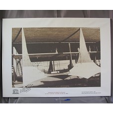 FOTOGRAFIA SÉPIA (60X89 CM) IMPRESSA SOBRE TELA (79X109,5 CM). RETRATA PARTE DA CONSTRUÇÃO DO PALÁCIO DO ALVORADA, EM 1958. NA PARTE INFERIOR, A INSCRIÇÃO 'ACABAMENTO DO PALÁCIO DO ALVORADA EM RITMO ACELERADO, CONCLUÍDO EM JULHO DE 1958 / FOTO AKE BORGLUND (SUÉCIA) -1957 / ACERVO PARTICULAR DA PIONEIRA MERCEDES URQUIZA'. NO LADO ESQUERDO, SÍMBOLO DA UNESCO E A DEDICATÓRIA 'À NOSSA PRIMEIRA-DAMA MARISA LETÍCIA DA SILVA, COM PROFUNDA ADMIRAÇÃO E CARINHO. MERCEDES URQUIZA / 31-05-2006'.