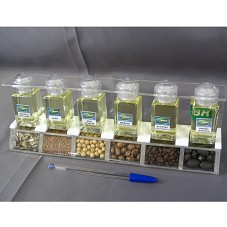 SEIS FRASCOS PEQUENOS DE VIDRO (8X3X3 CM), COM TAMPA PLÁSTICA BRANCA, CONTENDO AMOSTRAS DE BIODIESEL DE GIRASSOL, NABO, SOJA, MAMONA, ALGODÃO E PINHÃO. ACONDICIONADOS EM ESTOJO ACRÍLICO COM A LOGOMARCA DA PETROBRÁS, CONTENDO AMOSTRAS DAS SEMENTES. A CAIXA ACRÍLICA COM OS FRASCOS ESTÃO ACONDICIONADOS EM UMA CAIXA (12X31X8 CM) NA COR CINZA, COM A LOGOMARCA DA PETROBRÁS. ACOMPANHA CARTÃO DE VISITA DO SENHOR CARLOS NAGIB KHALIL.